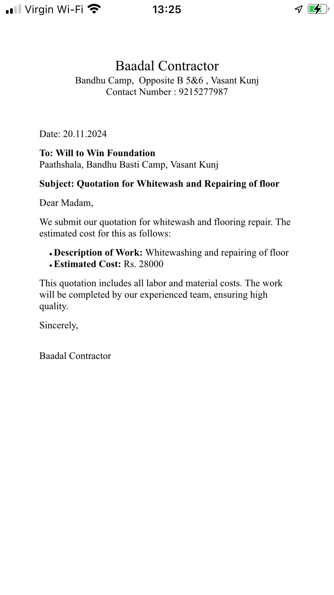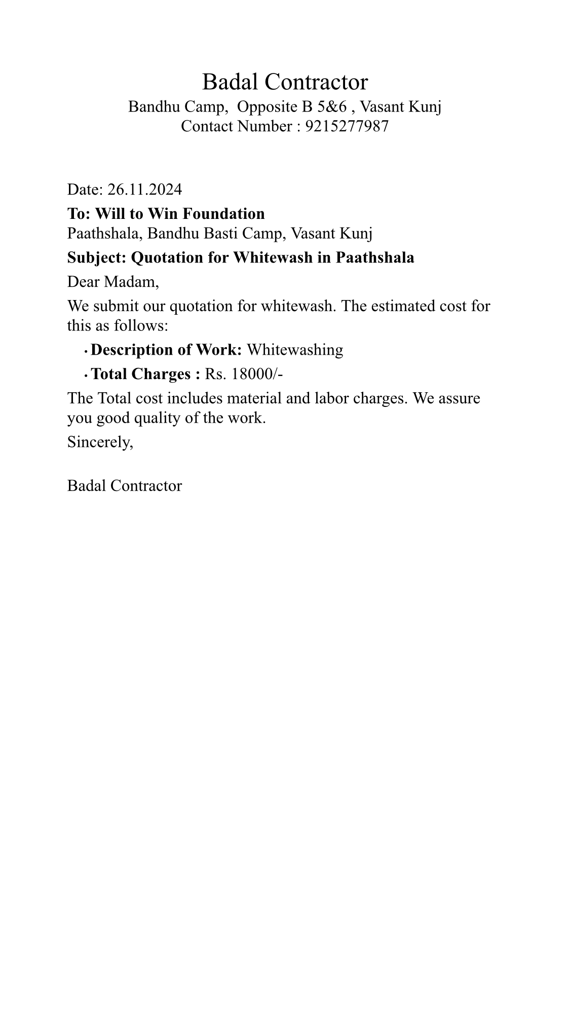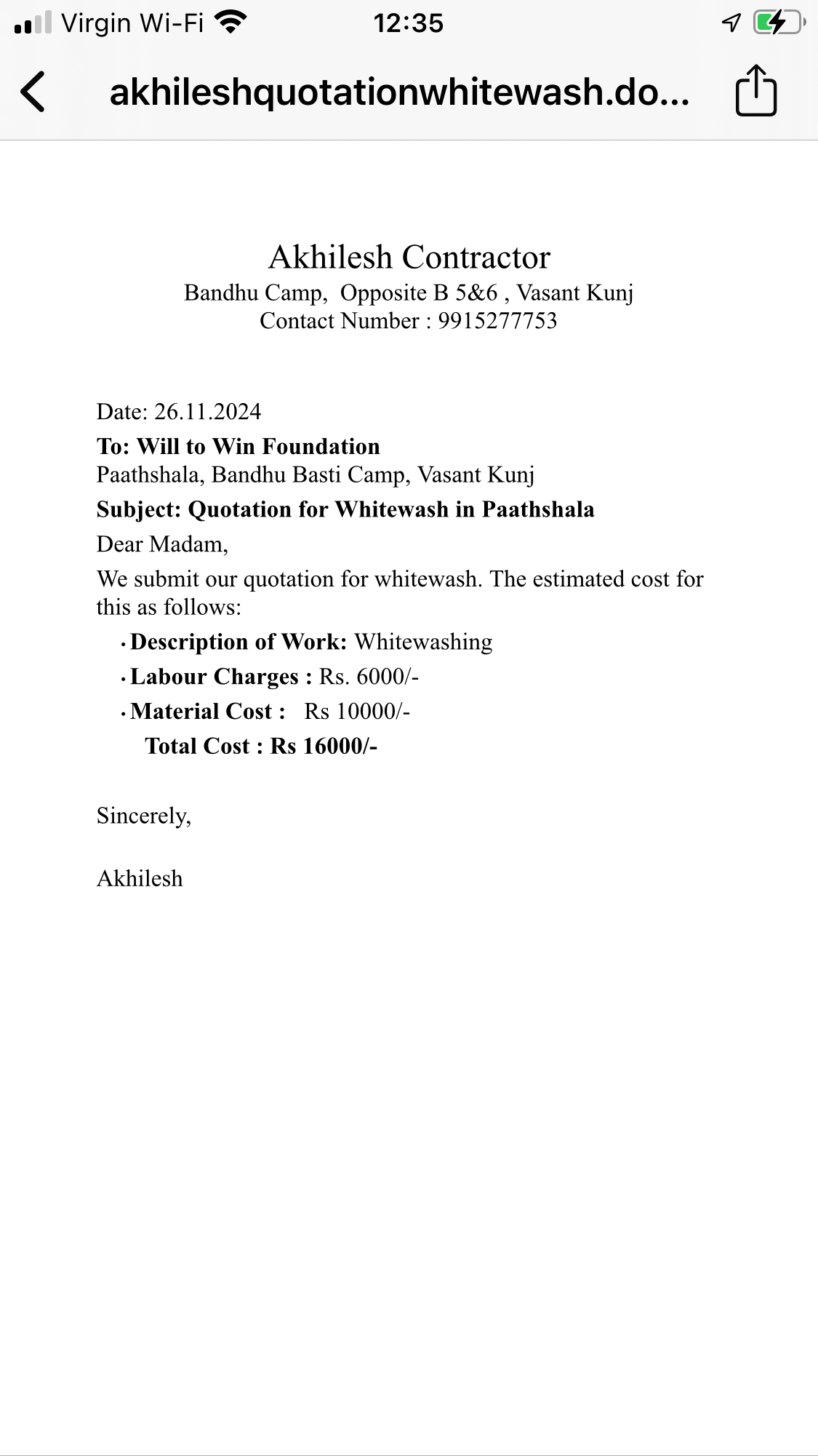 Akhilesh contractor final quote INR / Rs 16000 for paint