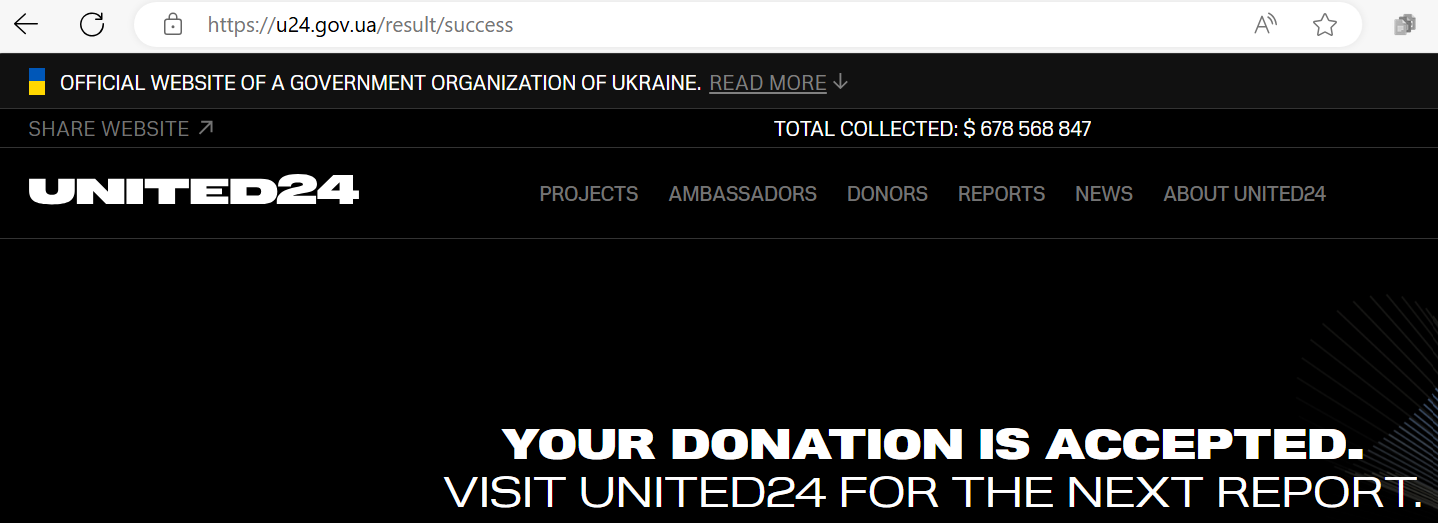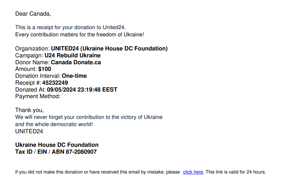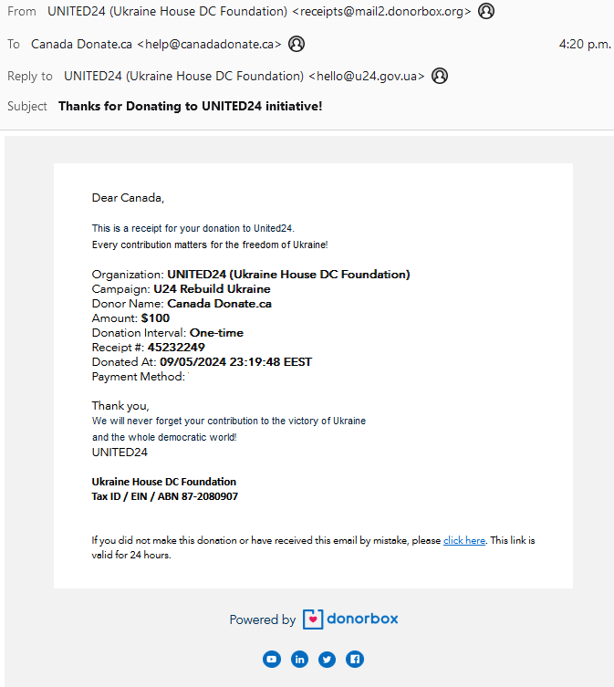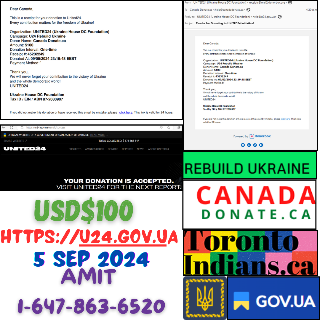 Sponsor - USD$100 - CanadaDonate.ca -UKRAINE GOVT - REBUILD UKRAINE